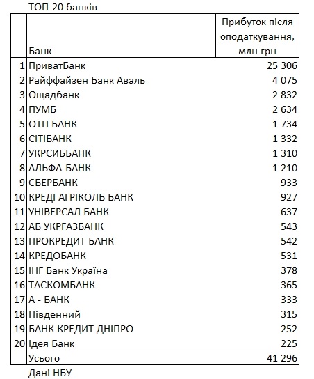Згідно з даними НБУ, найприбутковішим банком залишається Приват, який за рік заробив 25,306 млрд гривень (-7,3 млрд).