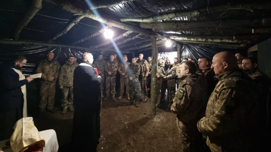 Бійці 103 окремої бригади Сил територіальної оборони ЗСУ зустріли Різдво на фронті. Військові причастились та виконали спільну молитву