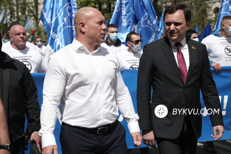 Прихильники "Опозиційної платформи - За життя" на чолі із нардепом від цієї політичної сили Іллею Кивою пройшли колоною до парку Вічної Слави.