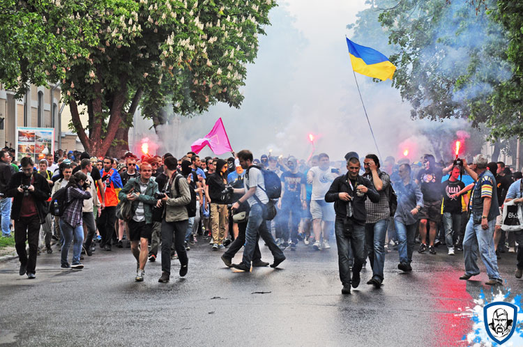 За даними поліції, молоді люди кидали в бік клубу димові шашки та вибухові пакети, банки з червоною фарбою, а також розмалювали фасад будівлі. Повідомили ДТ.