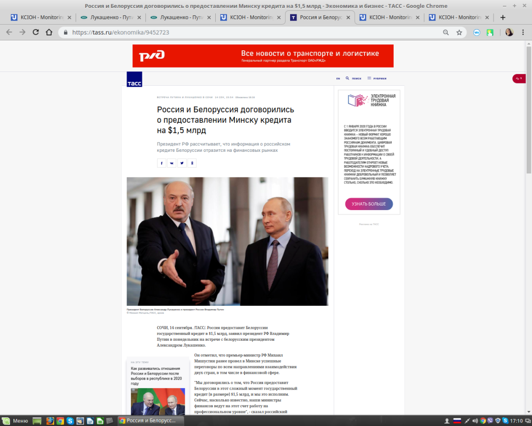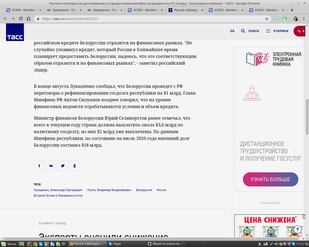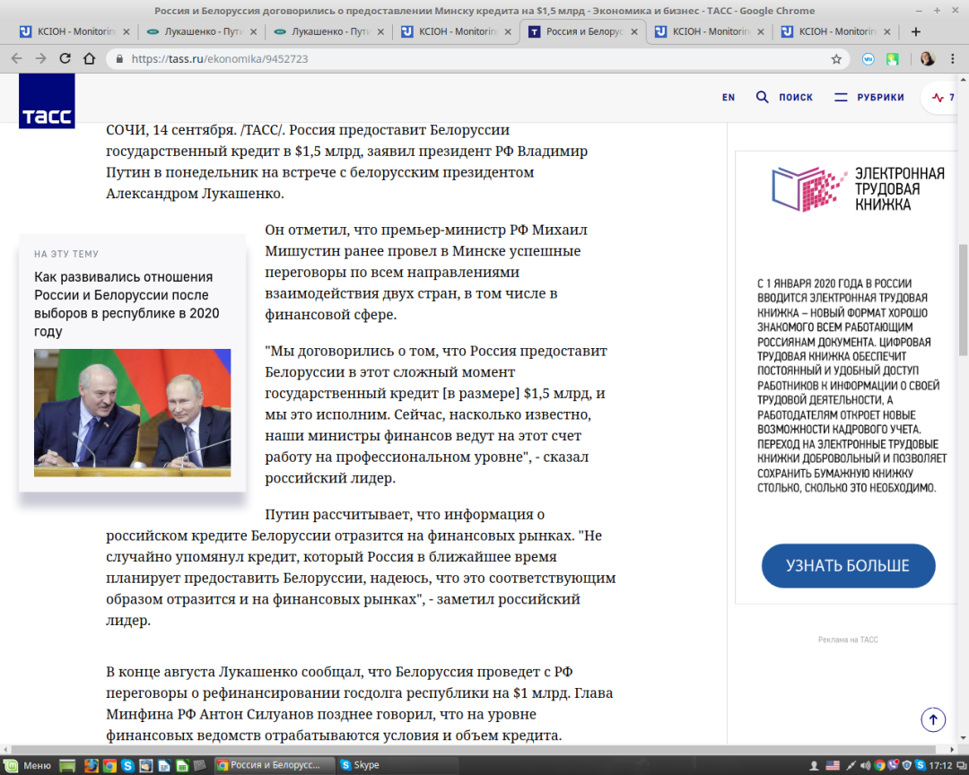 "Ми домовилися про те, що Росія надасть Білорусі в цей складний момент державний кредит (в розмірі - ред.) $1,5 млрд, і ми це зробимо!. Зараз, наскільки відомо, наші міністри фінансів ведуть на цей рахунок роботу на професійному рівні", - сказав Путін.