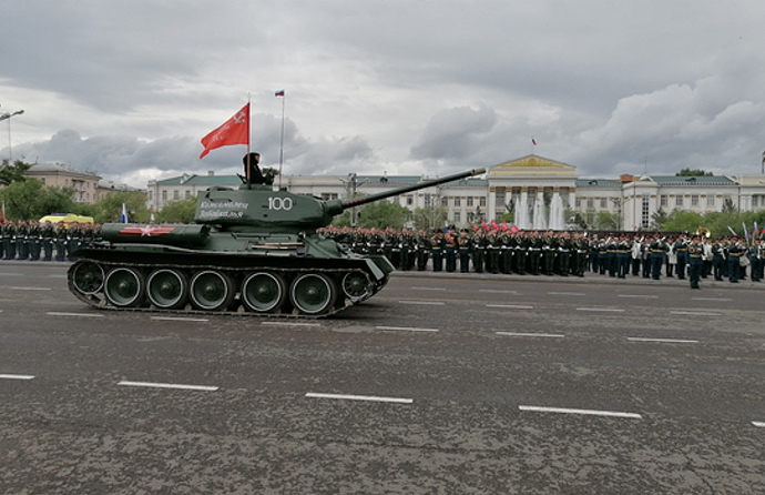 У Росії військовий парад на честь 75-річчя перемоги у Другій світовій війні мав відбутися 9 травня, але його перенесли на 24 червня через епідемію коронавірусу. Під час репетицій параду під Москвою на Covid-19 захворіли мінімум три сотні російських військових. Всесвітня організація охорони здоров'я побоюється спалаху COVID-19 після військового параду в Москві. 26 і 27 травня в РФ зафіксували по 174 летальних випадки від COVID-19, 18 червня в Росії від коронавірусу померла 181 людина. Президент Володимир Зеленський заявив, що не поїхав би до столиці Росії на парад із нагоди 75-річчя перемоги над нацизмом, навіть якби його запросили. Президент Росії Володимир Путін призначив на 1 липня голосування щодо змін до Конституції РФ, які дозволять йому залишитися при владі до 2036 року.