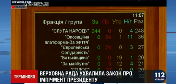 Верховна Рада ухвалила закон "Про особливу процедуру усунення Президента України з поста (імпічмент)".