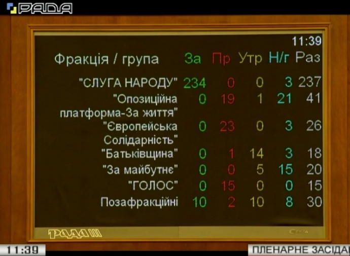 Документ підтримали 244 народні депутати, повідомляє кореспондент Укрінформу.