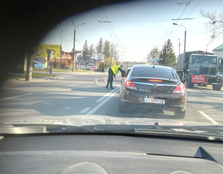На в’їзді до Франківська й справді стоїть блокпост: дві машини Нацгвардії та одна – патрульної поліції. Щоправда, медиків там помітити мені не вдалось. Натомість на вигляд добряче втомлений одноманітною процедурою поліцейський почергово спрямовував електронний градусник у напрямку прочинених вікон авто і пропускав авто далі. Судячи з темпів просування черги (а в деяких авто були ж і пасажири), не надто ретельно. У моєму випадку градусник був надворі, а моє чоло – в авто, відстань між ними – близько півметра. Утім, я не заперечував – мене, як і інших, влаштовувало, що зупинка була недовгою…