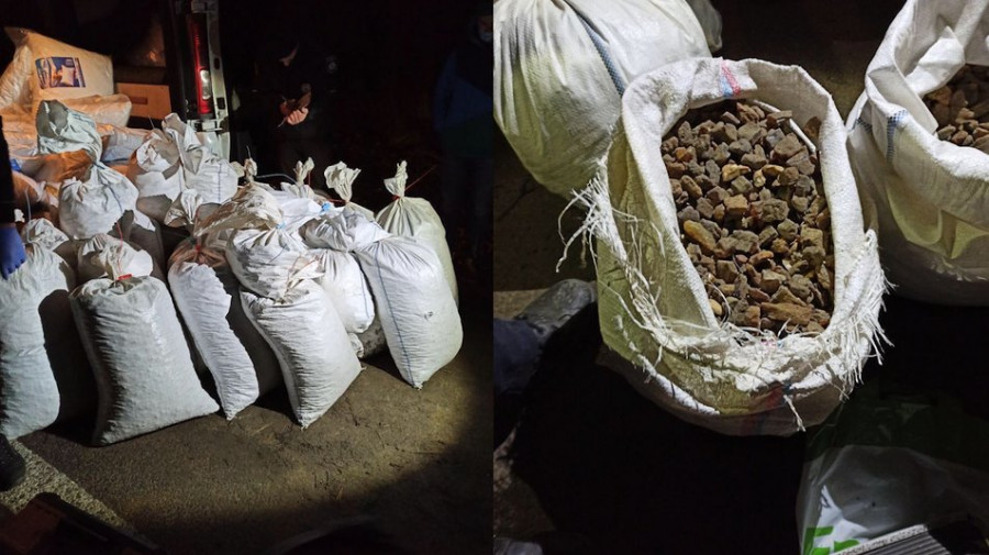 Інформацію про те, скільки ж наважили каміння у двадцяти мішках, Суспільне вкаже, як тільки отримає її від пресслужби управління Нацполіції.