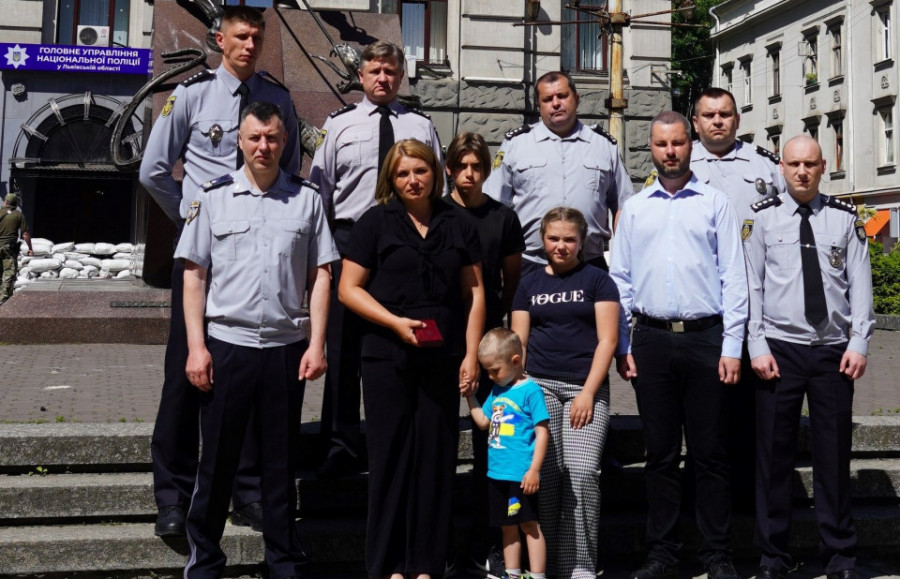 Державну нагороду сьогодні, 20 червня, дружині та дітям загиблого бійця вручив начальник Головного управління Національної поліції у Львівській області генерал третього рангу Олександр Шляховський.