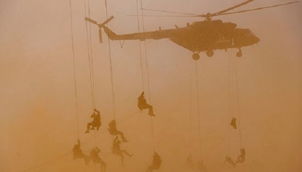 Водночас десантування особового складу здійснювалося по-штурмовому з положення зависання вертольотів над землею з використанням канатних та інших спеціальних засобів. Прикриття висадки тактичного десанту забезпечили ударні вертольоти Ка-52 "Алігатор".