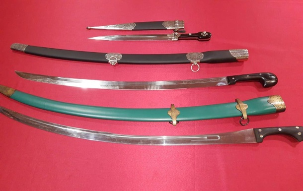 Виявлені ножі, кинджал та шаблі передано співробітникам Національної поліції для проведення експертизи, яка й визначить чи належать вони до холодної зброї.