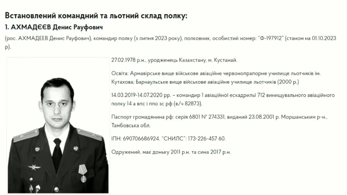 Оперативники та аналітики Головного управління розвідки Міністерства оборони ідентифікували 29 осіб командного, льотного та технічного складу 44-го окремого авіаційного полку особливого призначення дальньої авіації Повітряно-космічних сил РФ, які атакують Україну "Кинджалами".