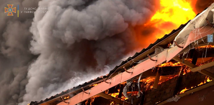 Рятувальники Львівщини показали, як ліквідовували пожежу на Золочівщині після ракетного удару