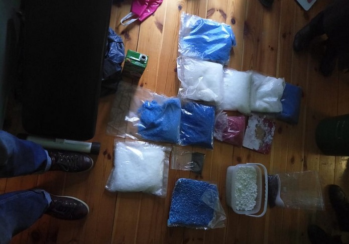 Під час проведення санкціонованих обшуків у приватному будинку на столичних «Осокорках» правоохоронці вилучили обладнання для виготовлення наркотиків, понад десять кілограмів психотропної речовини альфа PVP, п’ять кілограмів мефедрону, понад п’ять кілограмів амфетаміну загальною вартістю за цінами «чорного ринку» більше ніж двадцять мільйонів гривень.