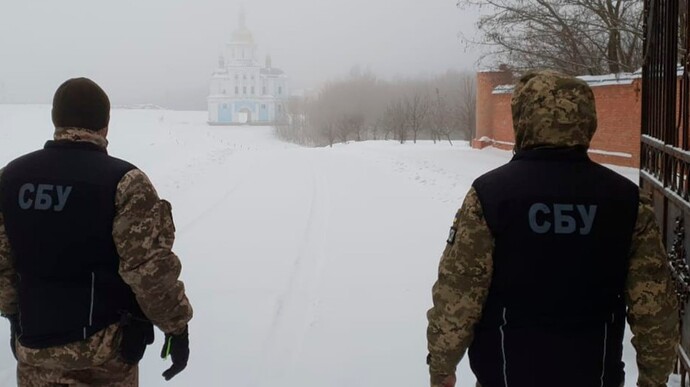 "За безпосередньої участі представників церкви правоохоронці проводять огляд території та приміщень для виявлення осіб, які, можливо, причетні до протиправної діяльності на шкоду державному суверенітету України, та предметів, заборонених до обігу", – пресслужба СБУ у Сумській області.