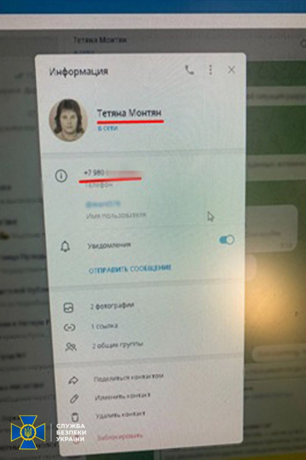 У результаті комплексних заходів у Києві викрито адміністратора прокремлівського телеграм-каналу ворожої пропагандистки, адвоката Тетяни Монтян, яка публічно виправдовує збройну агресію РФ, повідомляє українська спецслужба.