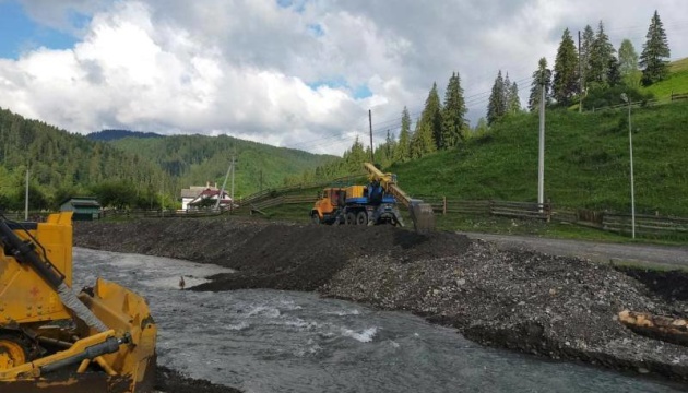 "На Закарпатті сили батальйону «Тиса» та підрозділів ДСНС продовжують розчищати дворогосподарства, русла річок та укріплюють їх береги.