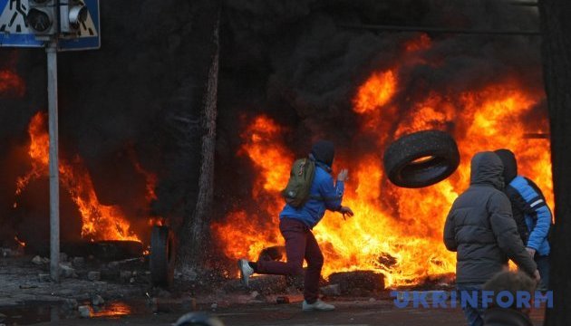 Після тривалих бійок ввечері 18 лютого, мітингувальників відтіснили на Майдан, нагадує Укрінформ. В ніч з 18 на 19 лютого протистояння стало ще запеклішим. Напередодні беркутівці оточили протестувальників з боку Інститутської вулиці та Європейської площі. Почався штурм. Аби захиститись, активісти підпалювали шини. Через деякий час їм вдалось утворити суцільну смугу полум’я, яка заважала пройти правоохоронцям. Люди кидали до вогню все, що знаходили.