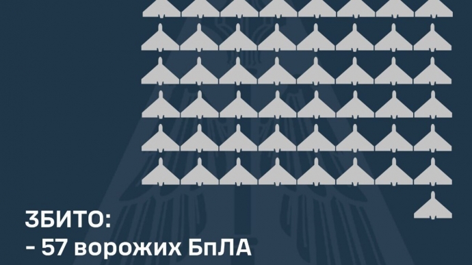 Сили ППО збили 57 із 97 БПЛА, ще 34 безпілотники-імітатори не досягли своїх цілей