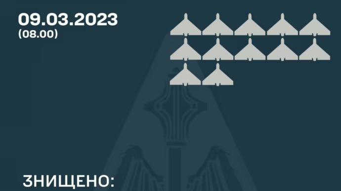 У ніч на 9 березня 2024 року противник атакував 15-ма ударними безпілотниками типу "Shahed", 12 з них були збиті силами ППО України.