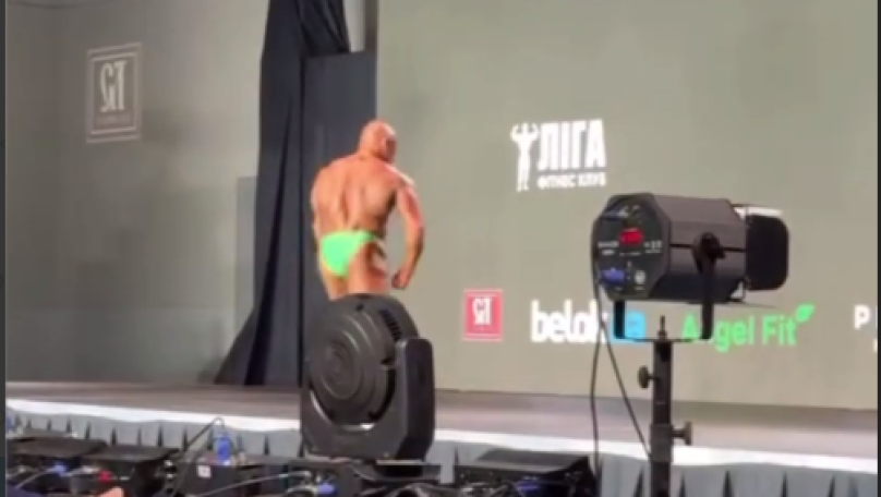 Відео з виступом поширила одна з гостей змагань. На кадрах видно, як бодібілдер виконує довільну програму під пісню російською мовою, а деякі глядачі зала підтримують його.