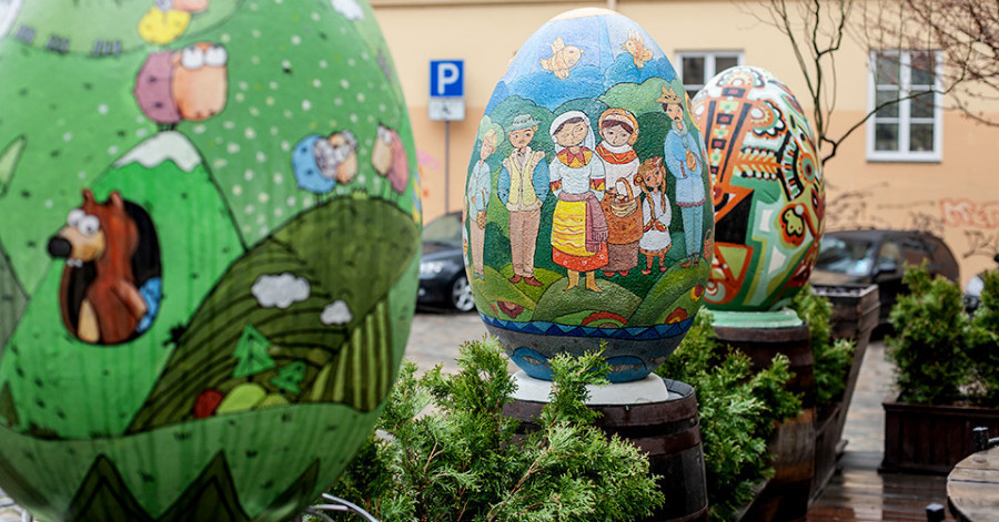 Більшість крамниць та закладів залишили свої вітрини без святкових оздоблень. Лише поряд із Домініканським собором можна роздивитись великі різнобарвні писанки, створені у місті ще попередніх років.