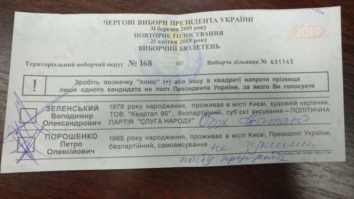 Більше 2% виборців, які взяли участь у другому турі виборів президента України між Петром Порошенком та Володимиром Зеленським, зіпсували свої бюлетені.