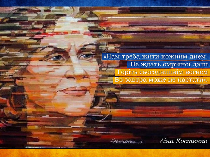 Ліна Костенко - це жінка чия творчість надихає та змушує замислитися на вічними темами. Її слово, і не лише поетичне, возвеличує дух українства та не дає забути, що ми є не лише нащадки великого народу, але й сучасники та будівничі його майбутнього.