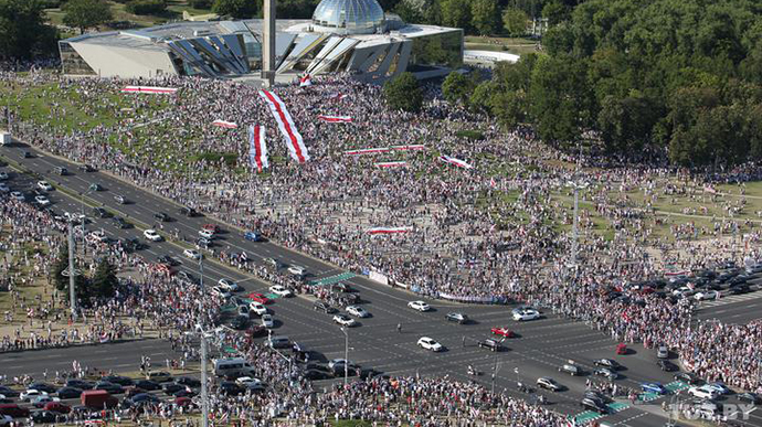 Як пише Tut.by, у неділю проходить найбільша акція протесту в історії суверенної Білорусі.