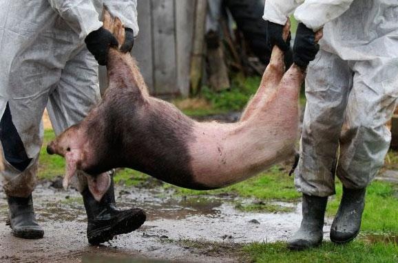 Продовжуються роботи щодо забою та вивезенню свиней.