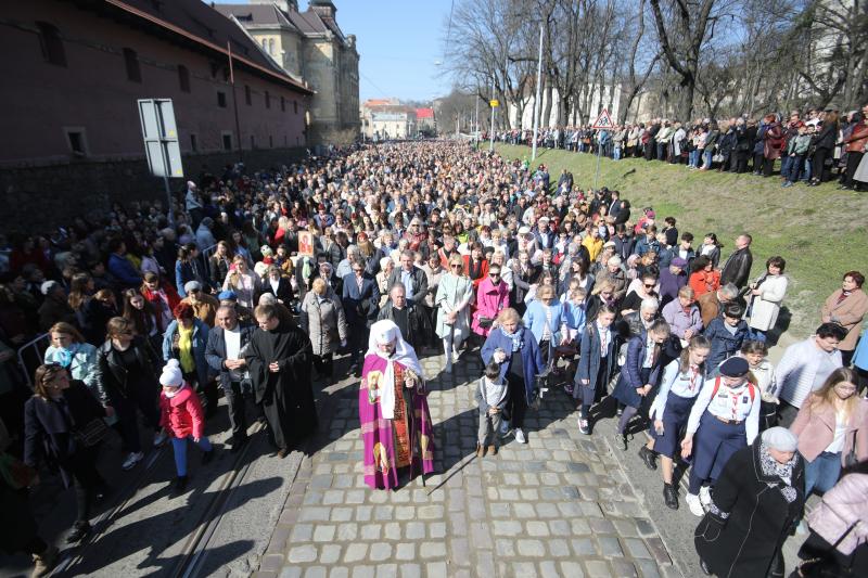 Хресна хода розпочалась біля храму святого Архистратига Михаїла, а завершилась на площі перед Архикатедральним собором Святого Юра. Молитва складається з 15 молитовних стоянь.