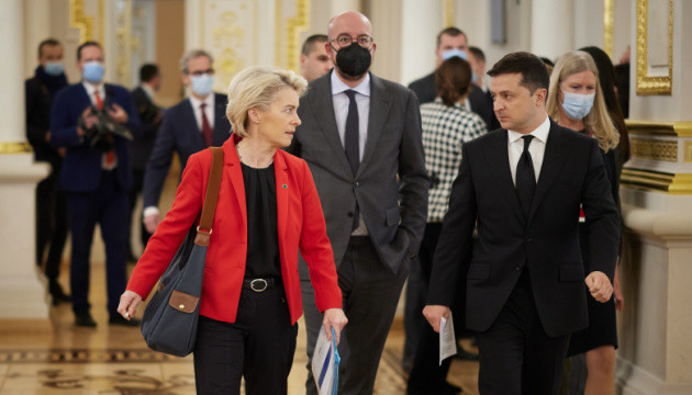 Про це йдеться у спільній заяві, яку 12 жовтря підписали у Києві Президент України Володимир Зеленський, Президент Євроради Шарль Мішель та Президентка Єврокомісії Урсула фон дер Ляєн за підсумками Саміту Україна – ЄС.