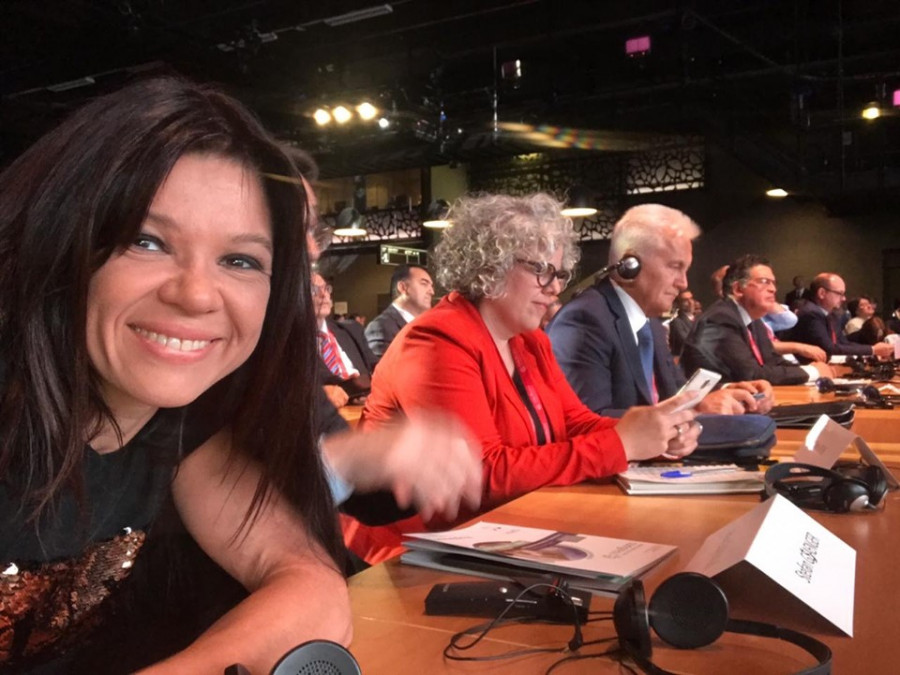 Руслана Лижичко презентувала учасникам короткометражний фільм про відновлювану енергетику в Україні, зйомки якого проходили, в тому числі, і на Каховській ГЕС.