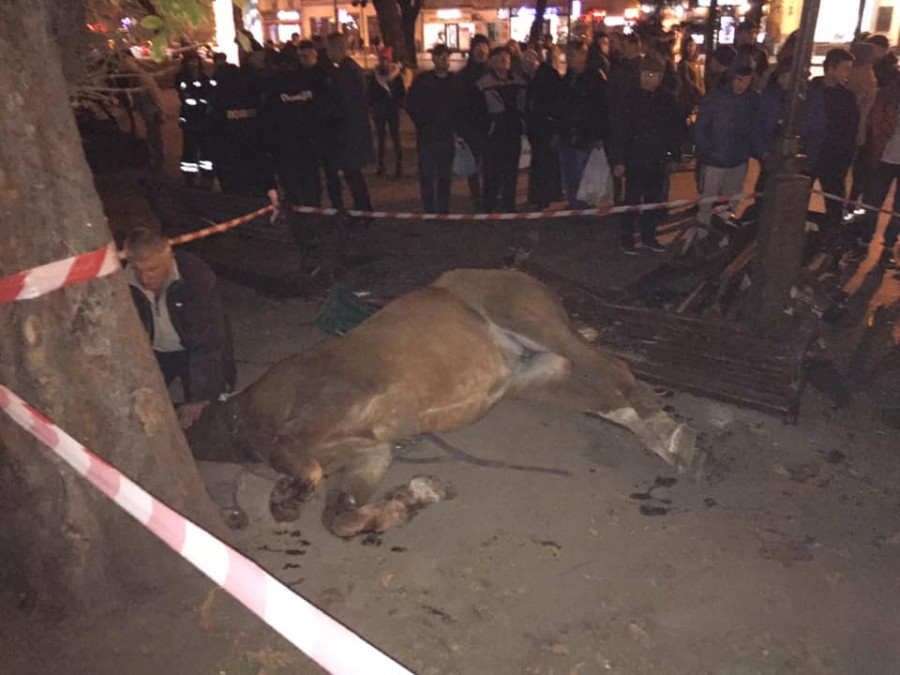 Також попередньо встановлено, що прогулянкова карета, запряжена двома кіньми стояла на проспекті Свободи. Близько 18.30 коні сполохались голосного хлопка, ймовірно, звуку петарди чи салюта, понесли та виїхали на центральну пішохідну алею, де на одній з лавок сиділа потерпіла.