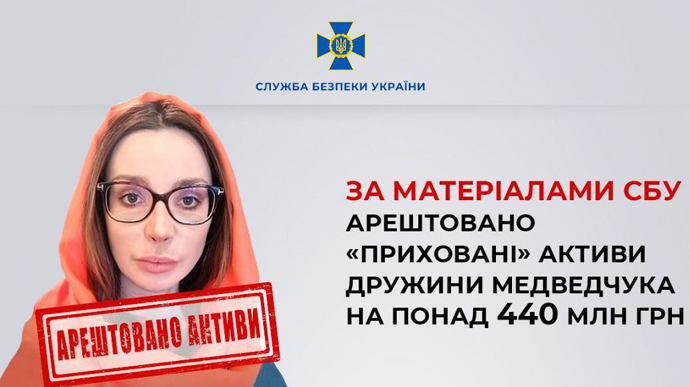 Суд арештував активи на понад 440 млн грн дружини кума російського диктатора Оксани Марченко, яка підозрюється у фінансуванні російських окупаційних угруповань.