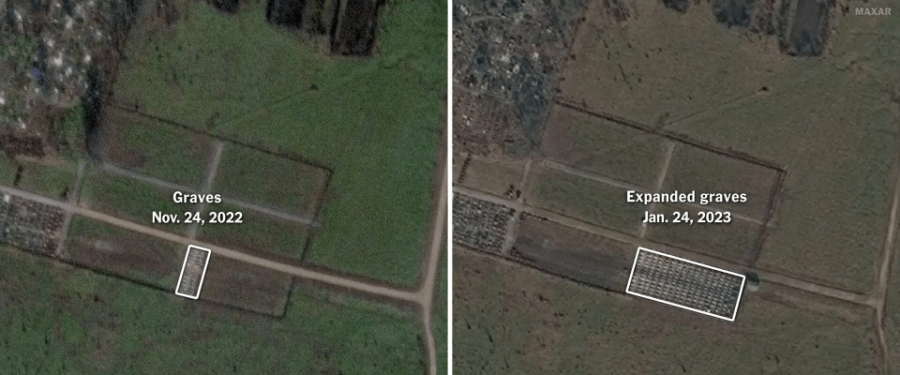 На супутникових знімках за 24 січня видно, що наразі на кладовищі приблизно 170 поховань. Це у 7 разів більше, ніж було ще 2 місяці назад