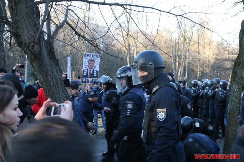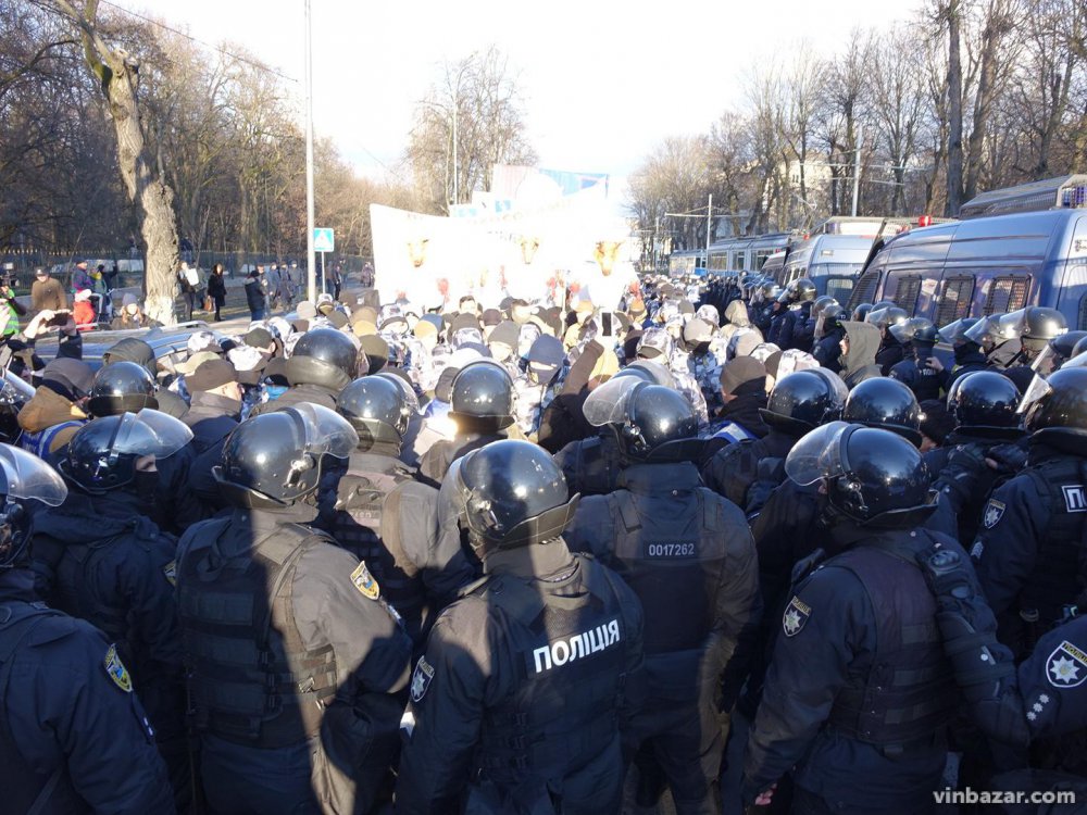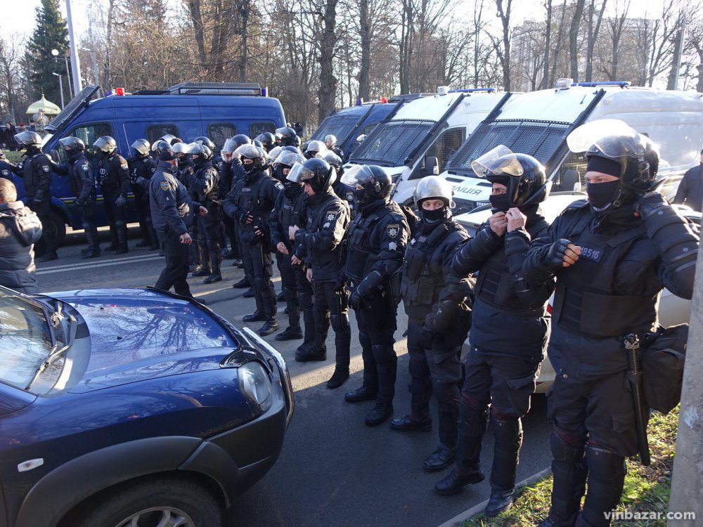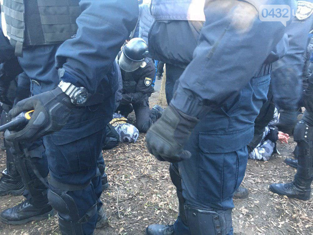 18:25 Поліція Вінницькій області повідомляє, що представники Нацкорпуса використовували газові балончики і димові шашки під час сутички з правоохоронцями, кидали каміння. За порушення громадського порядку було затримано три людини, їх доставили до відділку для встановлення осіб та правової кваліфікації їх дій.