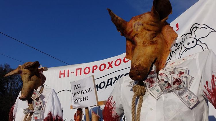 Свинячі голови на вилах та сутички з поліцією: Вінницю відвідав президент
