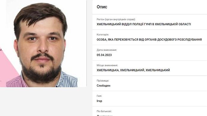 Інформацію про Слободяна розміщено на сайті МВС у розділі "Розшук".