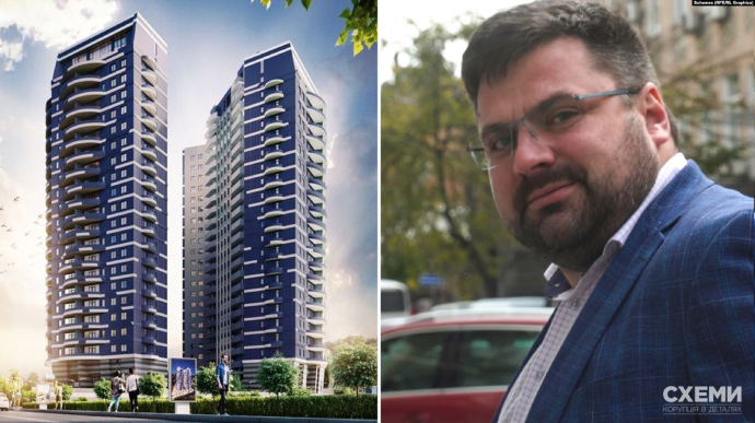 "Схеми" зафіксували, що Андрій Наумов користується цією квартирою. Знімальна група кілька разів помічала Mercedes із номерами прикриття, який заїжджав і виїжджав з підземного паркінгу ЖК.