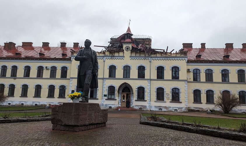 Територію перед корпусом університету природокористування у Дублянах прибрали від уламків після атаки