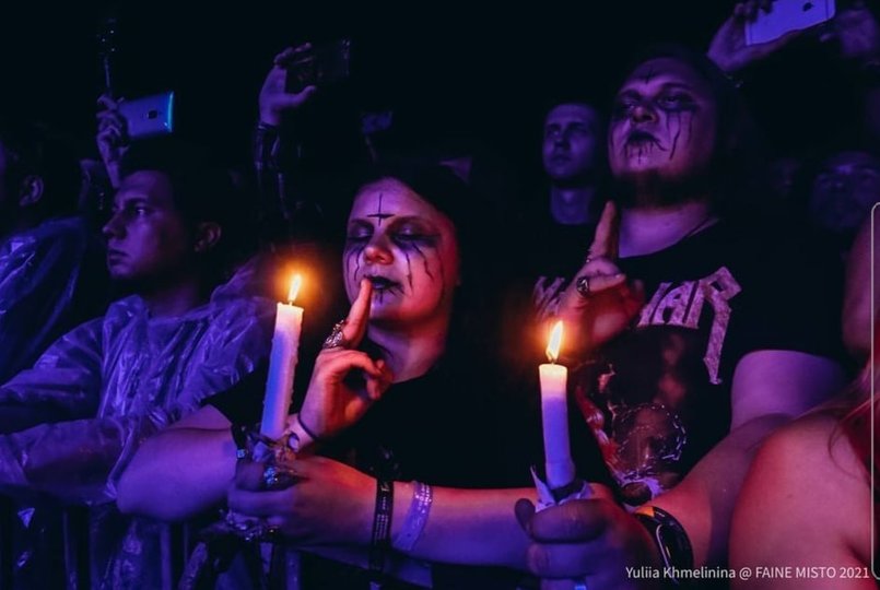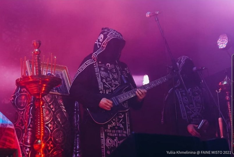 Музиканти були одягнуті в одяг монахів-схиників з перевенутими хрестами- символами сатанізму.