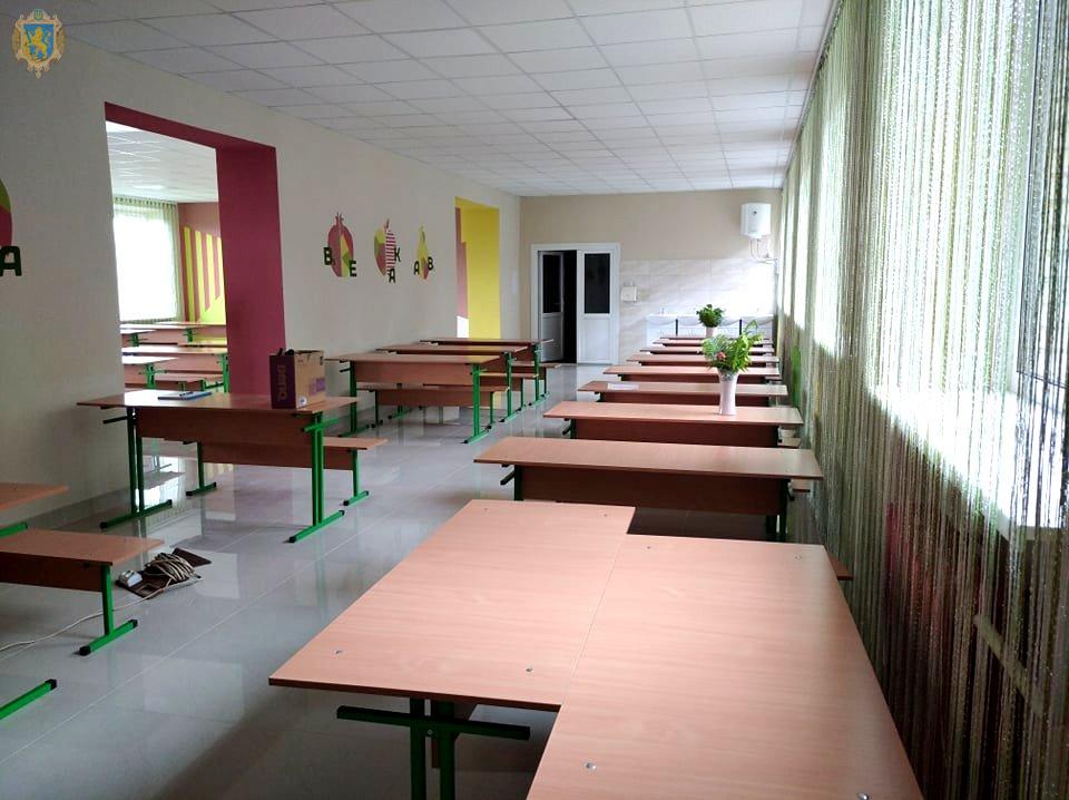На ремонт приміщення скерували майже 1 млн 800 тисяч, за рахунок розподілу коштів резерву освітньої субвенції у 2020 році, за напрямом “Ремонт обладнання та придбання обладнання для їдалень (харчоблоків)” понад 300 тисяч гривень скерували з державного бюджету. Ще 200 тисяч гривень залучили із обласного бюджету за Програмою капітального будівництва об’єктів соціально-культурного та житлово-комунального призначення на капітальний ремонт приміщень шкільної їдальні.