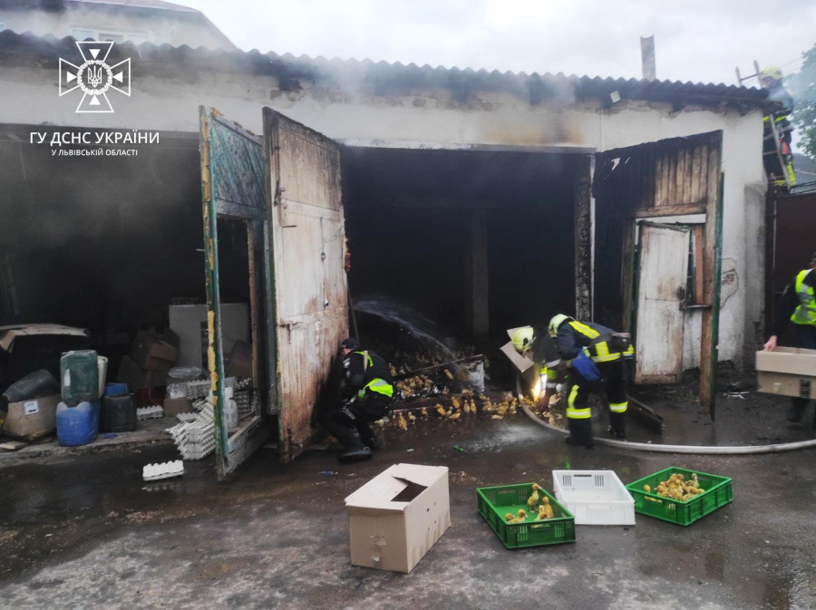 У Бродах на Львівщині під час гасіння пожежі в гаражі вогнеборці врятували 650 каченят
