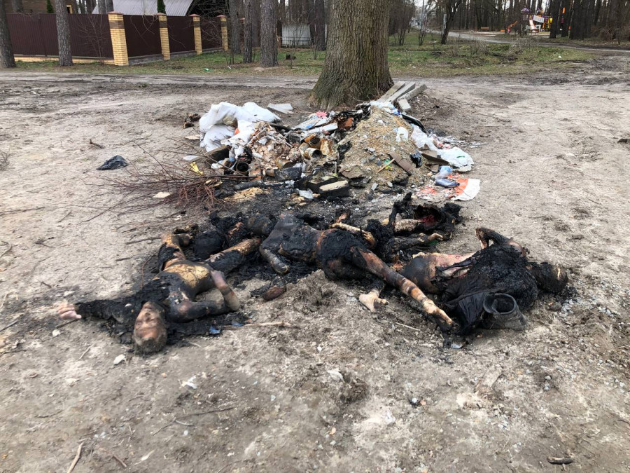 Ми знайшли у Бучі ще тіла людей. Їх намагалися спалити. Схоже, це сім'я із дітьми. 5-6 осіб. Важко зрозуміти. Очевидно, спочатку їх убили в одній із розстріляних машин, а потім хотіли замістити сліди та позбутися тіл. Їхні тіла лежать на перетині вулиць Старо-Яблонської та Івана Франка".
