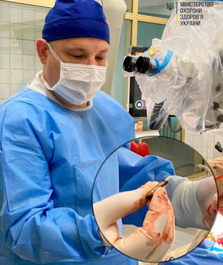 Під час операції, за допомогою нейрохірургічного мікроскопа медики вилучили металеві уламки з речовини головного мозку.