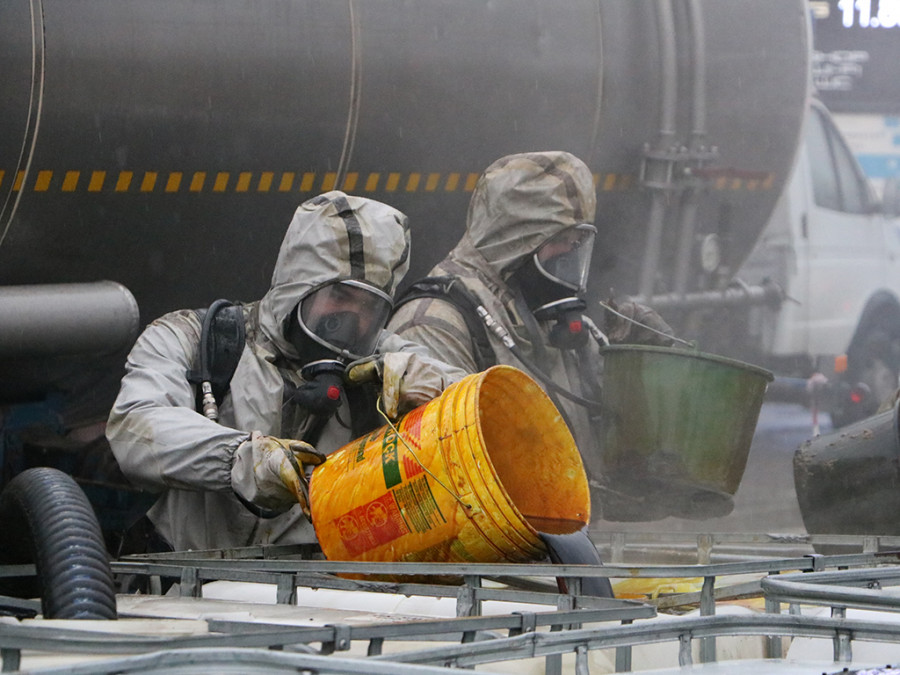 На місці події рятувальниками проводились роботи з переливу речовини з цистерни до ємностей, обвалування території та очищення дорожнього покриття.