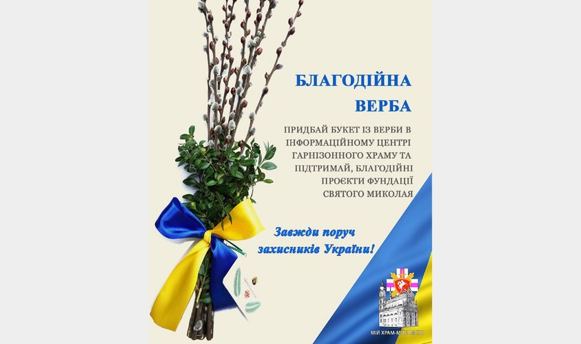 У неділю, 2 квітня, у Гарнізонному храмі святих апостолів Петра і Павла розпочинається акція «Благодійна Верба». Упродовж тижня охочі зможуть придбати вербні галузки й допомогти, таким чином, Фундації святого Миколая.