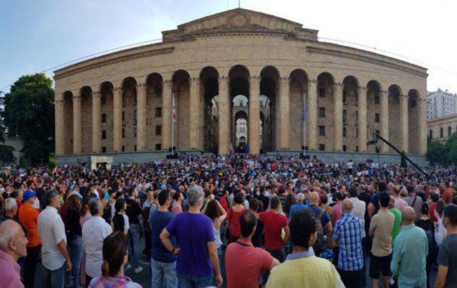 Наразі під будівлею грузинського парламенту у Тбілісі зібралися тисячі протестувальників разом з представниками опозиційних партій.
