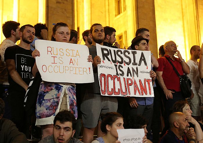 Нагадаємо, у Грузії почались масові протести після того, як російський депутат, член Комуністичної партії Сергій Гаврилов сів у крісло голови парламенту Грузії, коли виступав на сесії Міжпарламентської асамблеї православ'я. Це також викликало обурення групи парламентаріїв, які зірвали засідання.