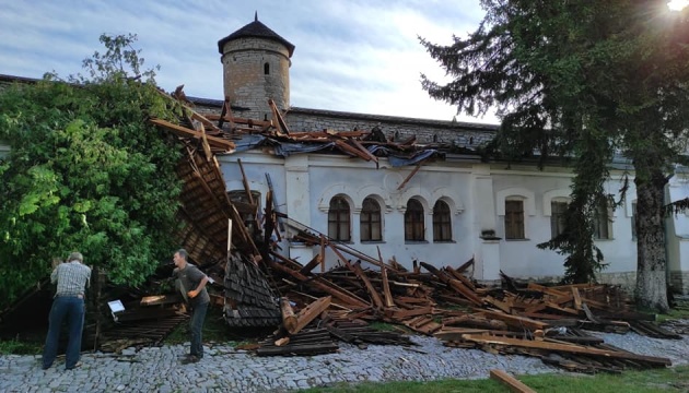 “5 серпня у Кам’янці була велика злива, яка супроводжувалася буревієм. Місто сильно постраждало, центральна частина, але думаю, найбільше питань буде про те, що сталося в нас у фортеці. Тому на випередження хочемо вам розповісти: сильний порив вітру зняв дах, дерев’яне накриття з башти Ласької. Дерев’яна конструкція пролетіла повітрям близько 25-30 метрів і впала на корпус №2, частково пошкодивши там дах”, - розповів директор музею.