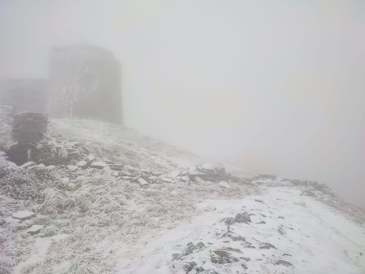 У Карпатах на г. Піп Іван Чорногірський падає сніг, температура -4°С.